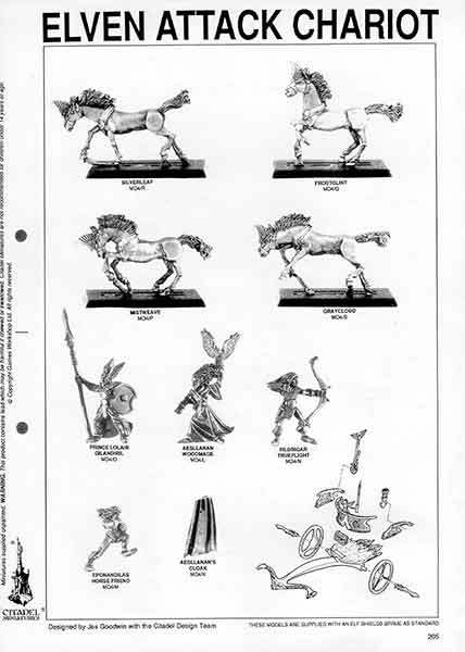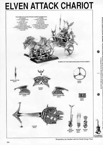 The archer is armoured in chain mail (Armour ST 6), and carries a sword and a dagger in addition to his elf-bow. A quiver of 40 arrows is attached to the chariot.