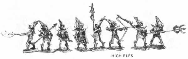 ARE 1 High Elf Attacking, Sword ARE 2 High Elf, Spear Upright ARE 3 High Elf with Spear ARE 4 High Elf with Sword ARE 5 High Elf, Archer ARE 6 High Elf with Dragon Spear ARE 7 High Elf with Double Handed Axe ARE 8 High Elf, Leader
