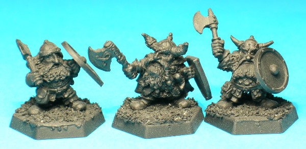 This set of 3 figures was designed to represent a Dwarven Fighter character at 3 stages of experience, from a novice dungeon delver to a mighty Dwarven warrior.