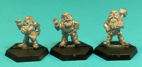 The pack of 3 Dwarf Villagers featured a trio of unarmoured non-combatants designed for town or village-based adventures. No variants were produced in this code.
