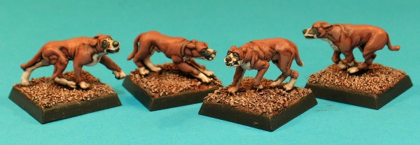 This set of 4 figures was designed to represent a small pack of Blink Dogs, lawful-good hounds which have the ability to 'blink', or teleport short distances to confuse opponents. I painted these figures to look like Bentley, my boxer dog. He's lawful-good, but he can't blink!